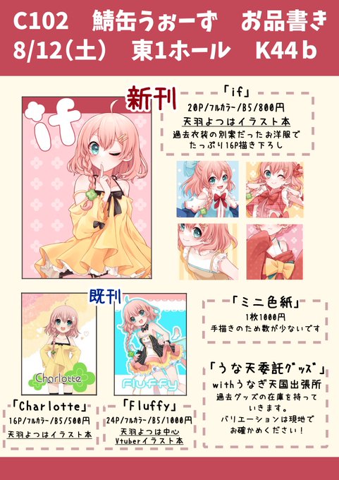 49 208 お品書きできました!よろしくお願いします☺ バーチャル売り子のタイムスケジュールは明日お知らせ予定です!直前になってしまってごめんなさい🥲 差し入れ等については前回のお知らせから変更はありません🍀 ※今後お知らせはこちらのツリーに載せていきます 23/08/10 23:22