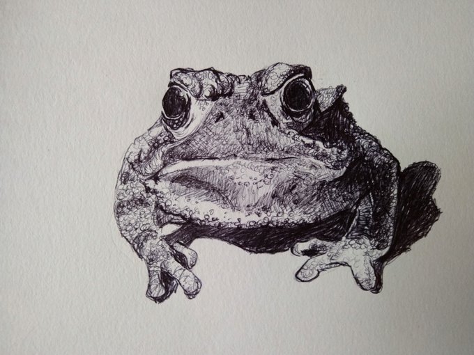 @The_Plantsman_ @poppyscupcakes @VivWrites @MaisyPlum2 @nancyandnell1 @StephCowburn @sistersofmoon @TobisiaLilThing @Lizzie_Chantree @ChiChiCardsUK @FirstTMaster @TheWandCarver @woodsagedesign @Chococake46 @CoutureBeans @DawnLoweActress @tony1kinobi Afternoon all, how is everyone today? I'm busy trying to catch up with #inktober. I think this #frog (for #enchanted) is my favourite so far. Not sure if he's grumpy because he used to be a handsome prince, or just fed up of randomly being picked up and kissed... ;)