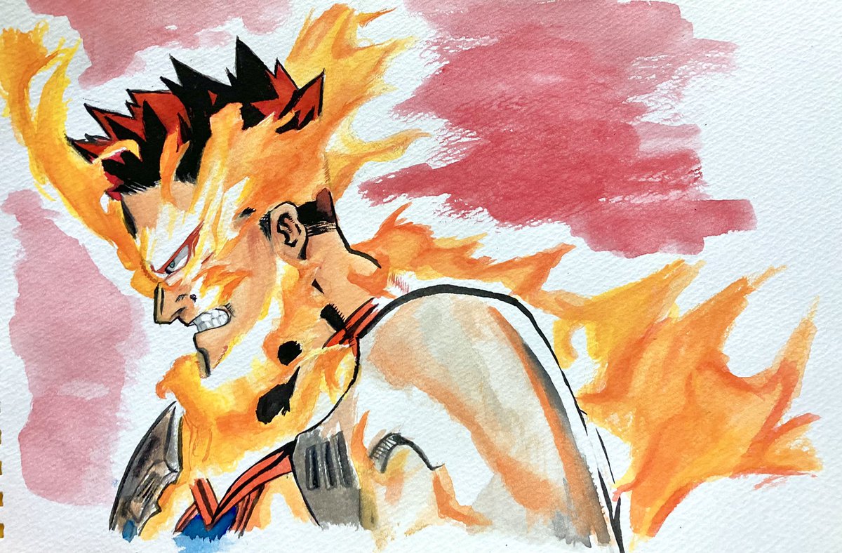 20 145 エンデヴァー 水彩絵の具で描いてみた #模写 #ヒロアカ #heroaca_a #水彩画 22/09/25 12:12