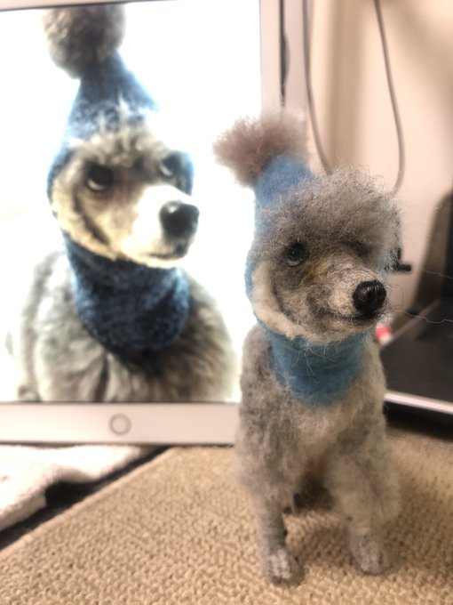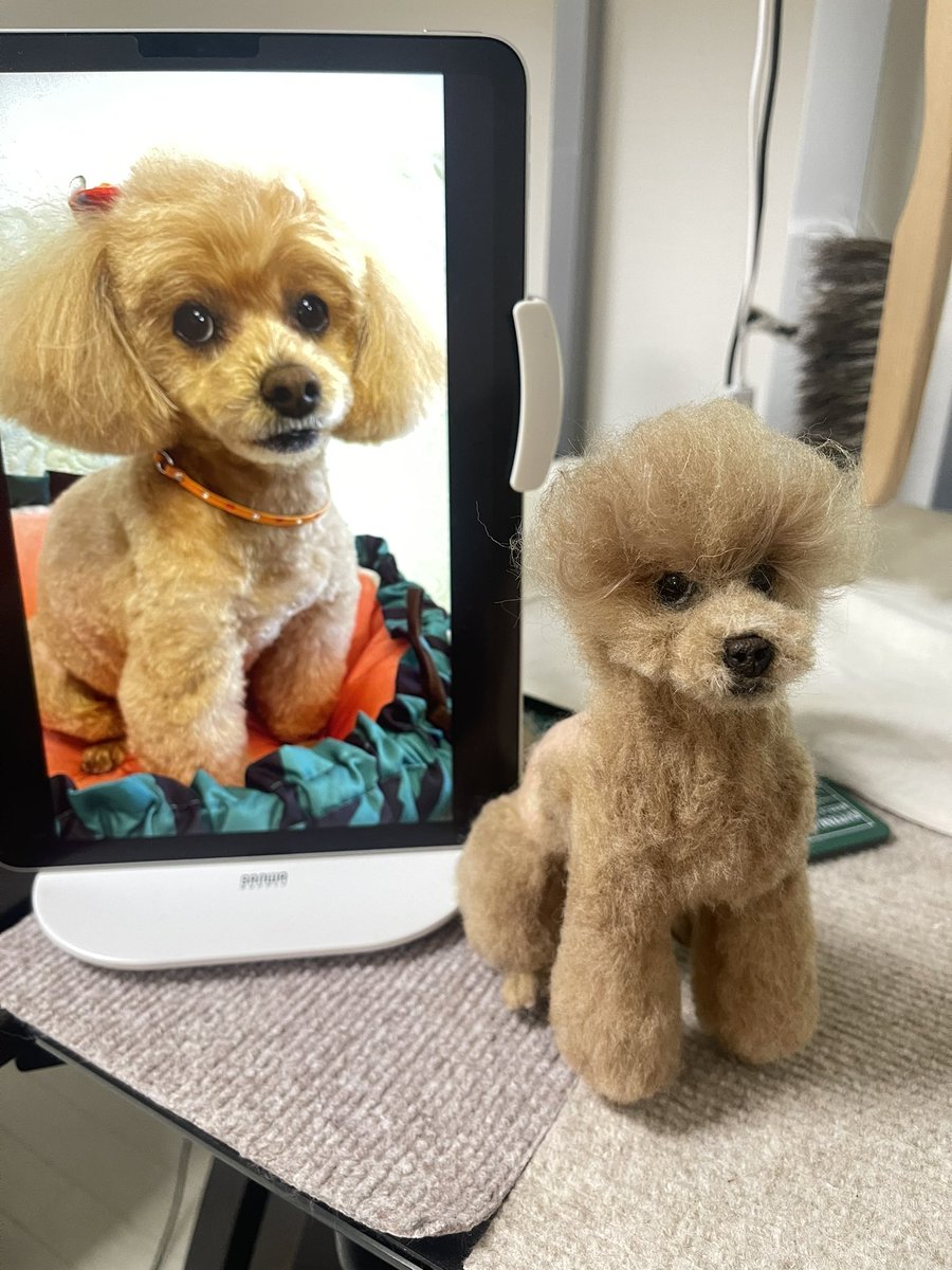 これから微調整しつつ羊毛カットして、モデルさんに近づけます🐩あと少しで完成かなぁ🤔 #羊毛フェルト #オーダーメイド #トイプードル