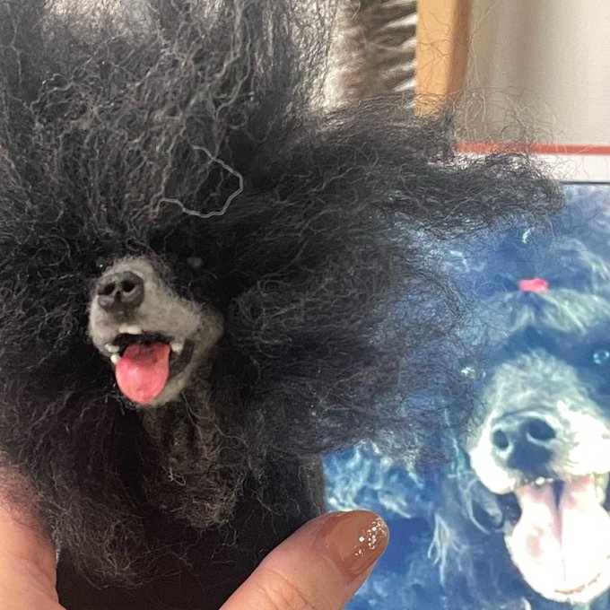 0 3 これから微調整しつつ羊毛カットして、モデルさんに近づけます🐩あと少しで完成かなぁ🤔 #羊毛フェルト #オーダーメイド #トイプードル 22/02/10 17:24