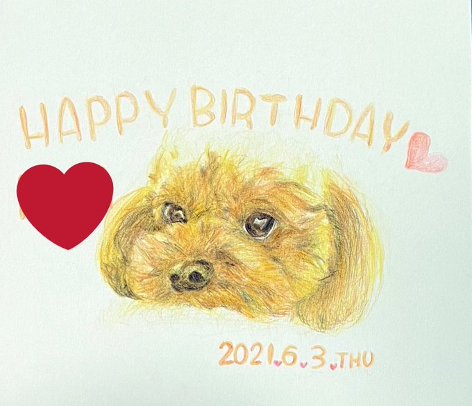 0 3 頑張って #色鉛筆 で描いてみた! 初の #犬 難しい💦 #ティーカッププードル #色鉛筆画 #ラクガキ #バースデーカード 21/06/03 17:27