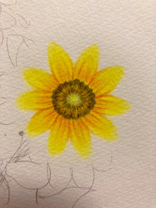 0 9 また絵が止まってました、いかんです、描きますです! ひまわり頑張るです‼︎*\(^o^)/* #ひまわり #色鉛筆 #イラスト 21/08/11 12:43
