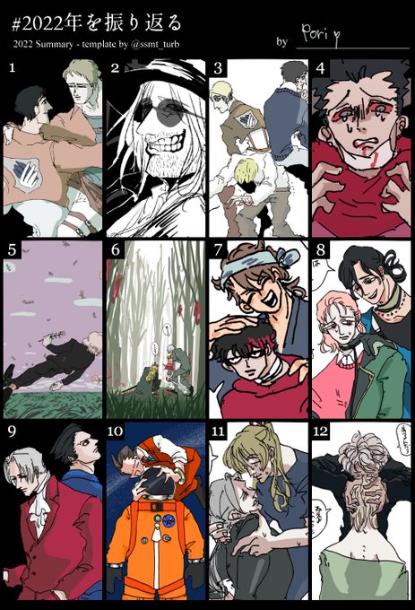 1 6 #2022年の絵を振り返る ワンピと進撃ととうらぶと逆転裁判の年でした⛩ 念願の本も出したし良い年だった〜!来年もなんとかなればよいな 22/12/26 20:47