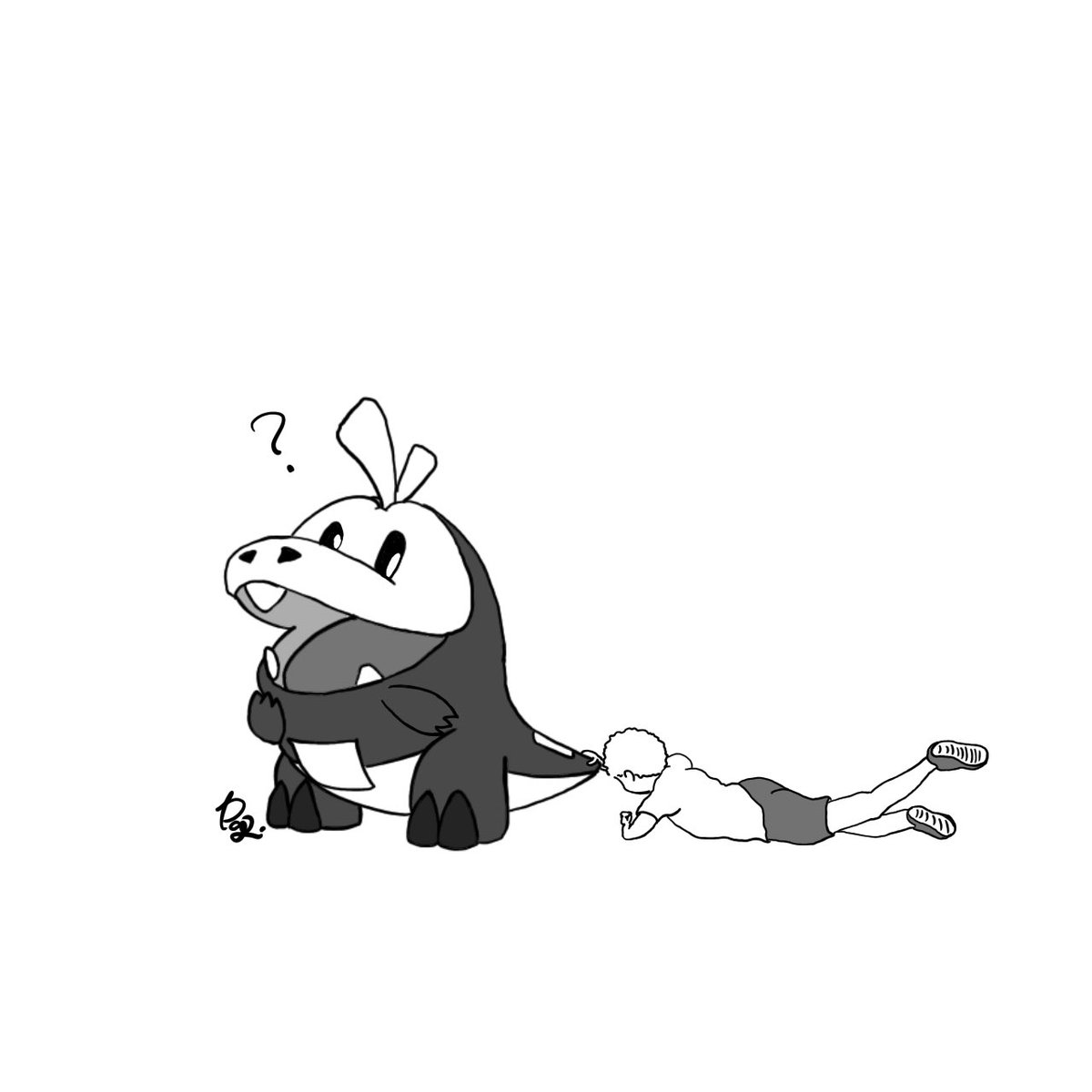 ホゲ? 楽しそーやりたいな でもポケモンに引きづられないようにね! ちょっと風刺画風 #ポケモン #ホゲータ #イラスト