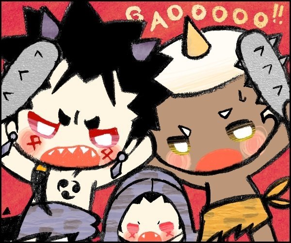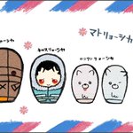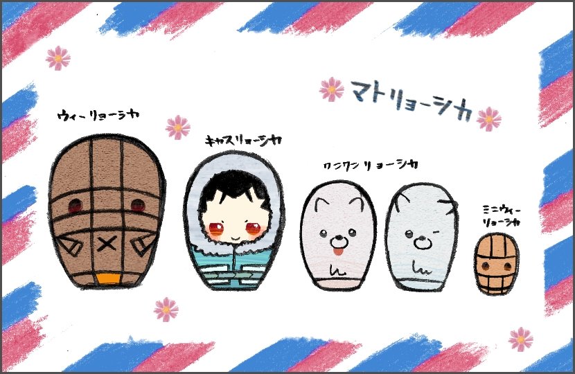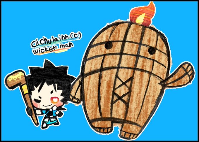 #みなさん去年の今頃はどんな絵描いてましたか 🪆術ニキ+ウィッカーマン+🐺🐺マトリョーシカ描いていました。 去年の今ごろは術ニキとウィッカーマンがわちゃわちゃしてる絵ばかり描いてました。 最近描いてない!😭
