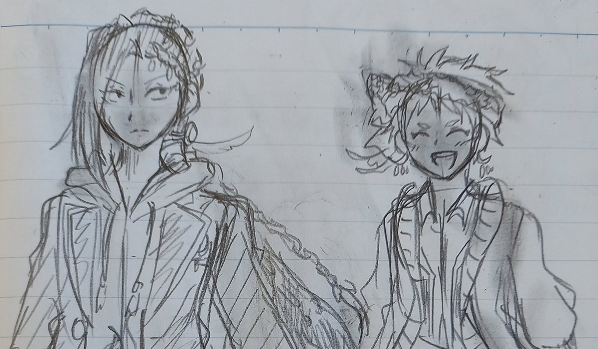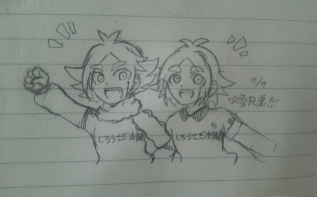 先週のプリントの落書きで吹雪兄弟描いた(真面目に授業受けろ)