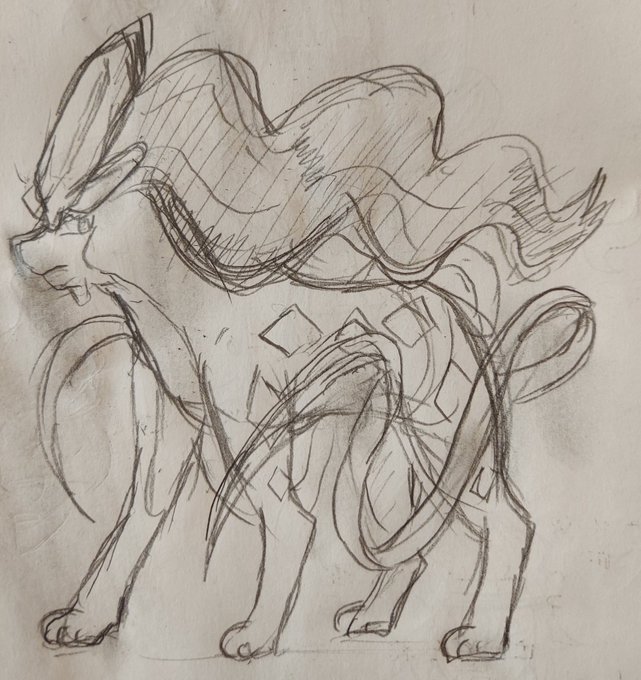 アニポケ見てスイクン描きたくなって描いてみたが難しいね⋯