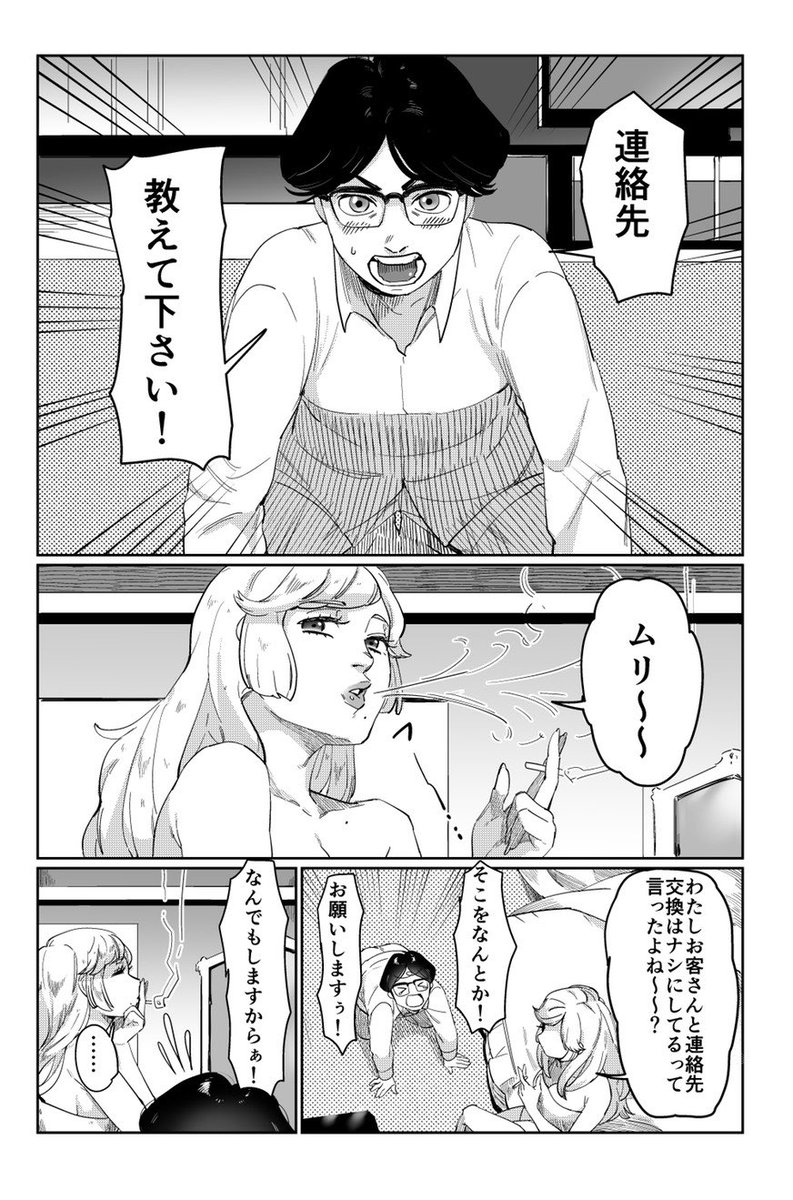 【どうしても連絡先を聞きたい客と面倒臭いから絶対教えたくない風俗嬢】 #少年ジャンプに絶対載るラブコメマンガ賞