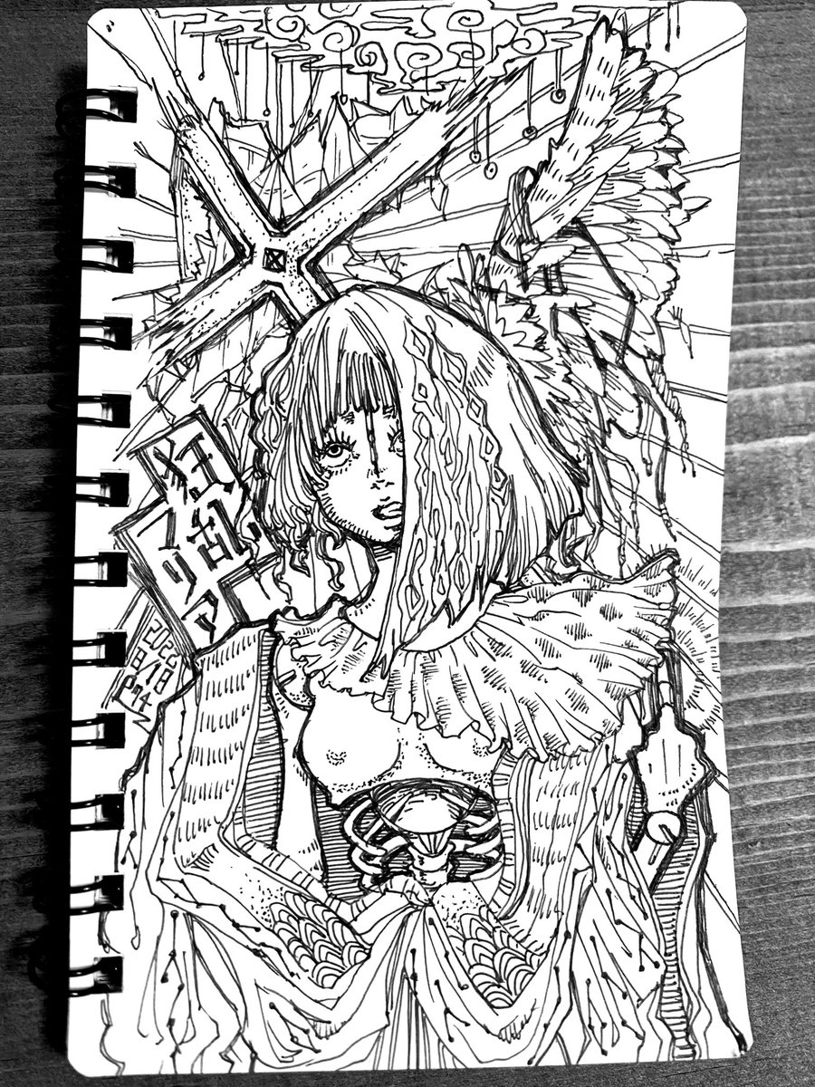 8/18 狂乱マリア 久々のアナログお絵描き〜 #イラスト #お絵描き #一発描き