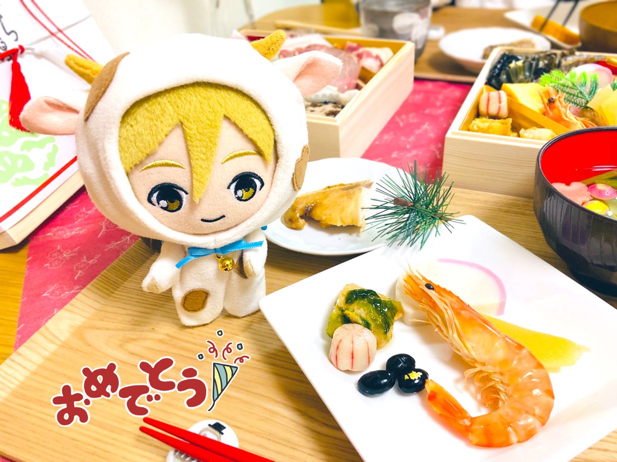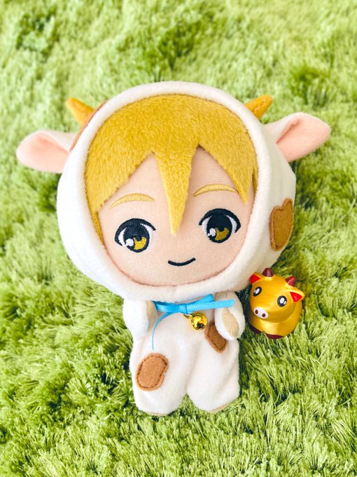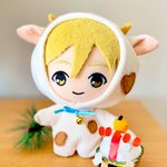 62 197 ちょっと遅れたけど…あけましておめでとうございます❗️🎍⛩🌅 モーモーパジャマともや🐮背中と左頬のハートがチャームポイント❤️ フリース生地がふわふわで気持ちいいです☺️♫ #あんスタ手芸部 21/01/03 13:39