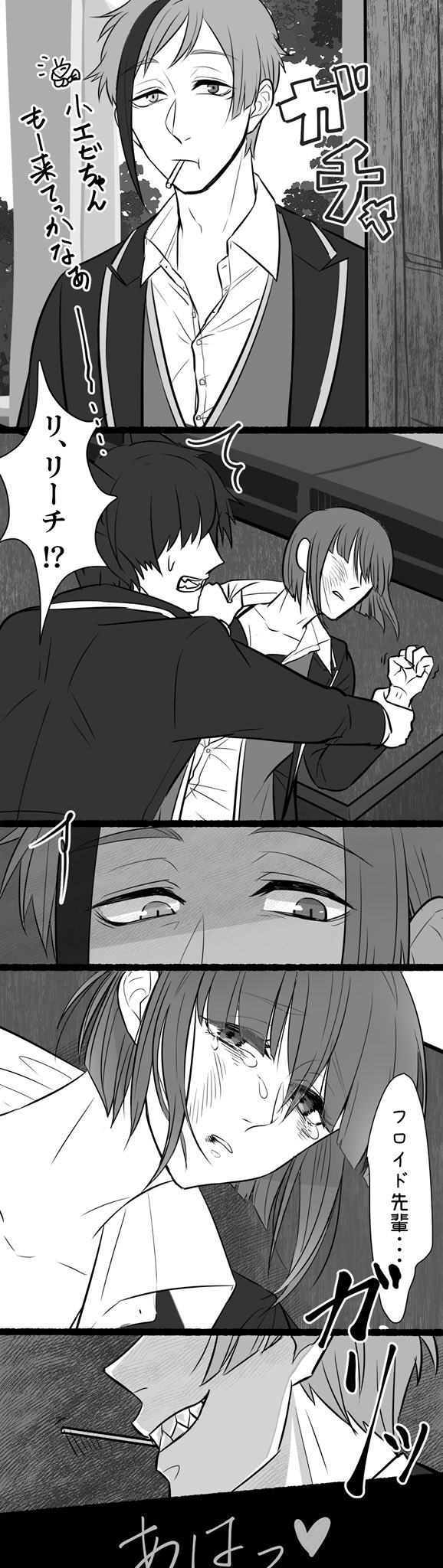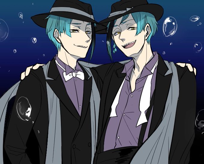 フロイド先輩来る途中で飽きてたらどうしようかと思いましたよ🦐(来てくれてよかった〜) っていうフロ監♀一回は描いてみたいよね。 あ、ピアス描くの忘れたわ。 #twstプラス