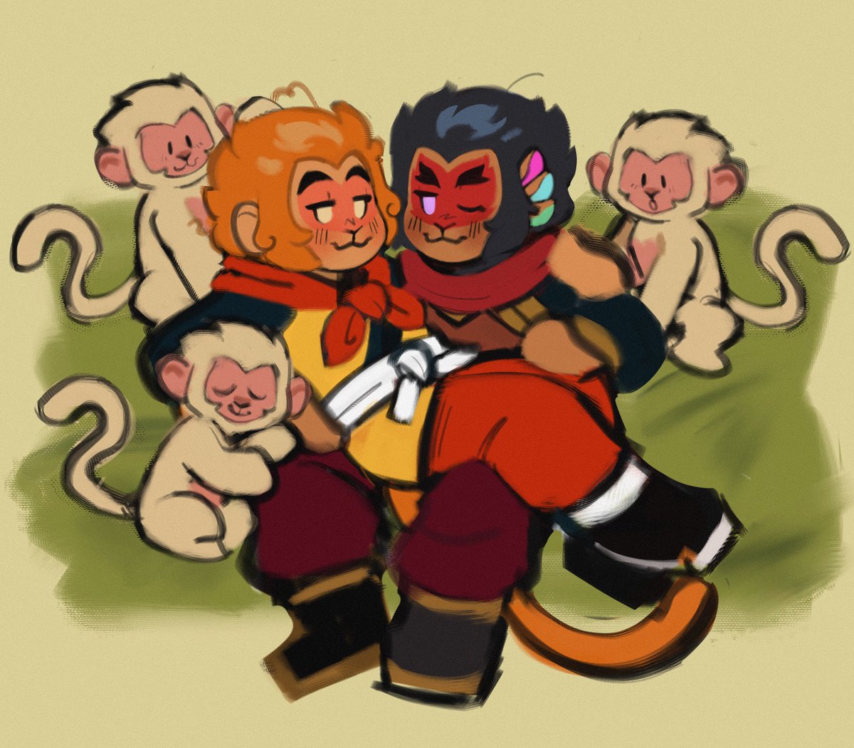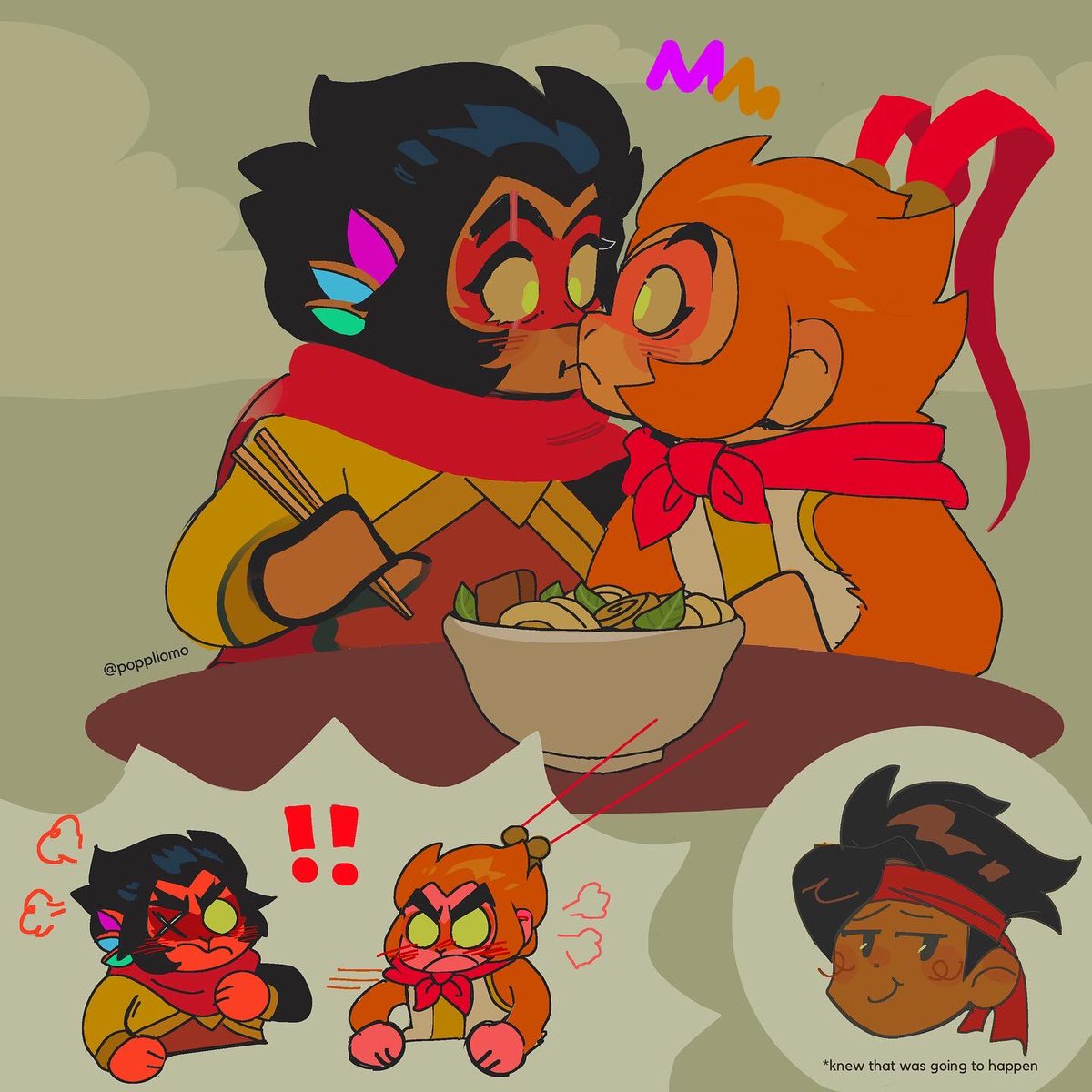 if macaque and wukong were next to each other in the background art 🧡💜 • #LEGOMonkieKid #lmk #shadowpeach