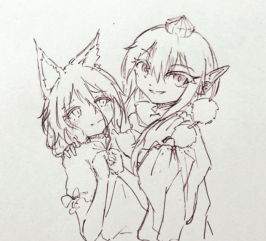 14 42 めぐつか描きました! 初めて描いた…というか2人かくのむつかしすぎたぁー!!!😭😭 22/08/22 22:07