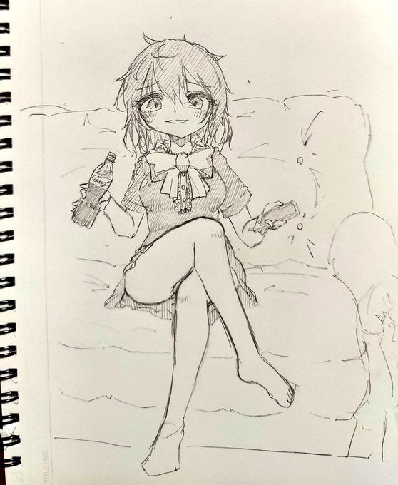 13 29 足組んでいたずらっぽい⋯というか、挑発的な笑みを浮かべるぬえちゃん描きました #深夜の真剣お絵描き60分一本勝負 22/12/02 22:17
