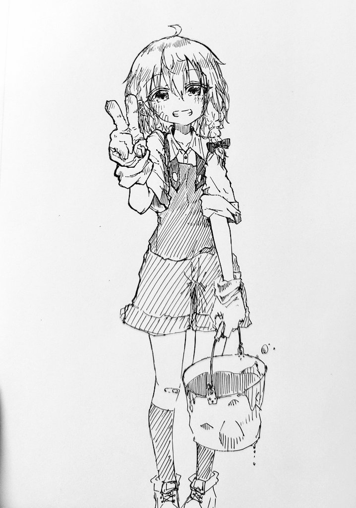 22 93 最近あんまり見ないけどちょっと前の少年漫画でよく見たクソデカ手袋が描きたくなったので、ニヘラ笑いで水汲みしてきた少年感あるショーパンクソデカ手袋魔理沙ちゃんです。 #深夜の真剣お絵描き60分一本勝負 23/03/15 21:56