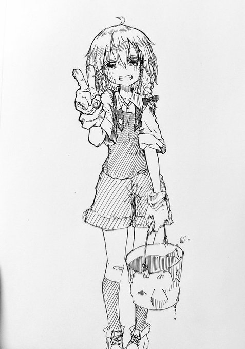 最近あんまり見ないけどちょっと前の少年漫画でよく見たクソデカ手袋が描きたくなったので、ニヘラ笑いで水汲みしてきた少年感あるショーパンクソデカ手袋魔理沙ちゃんです。 #深夜の真剣お絵描き60分一本勝負