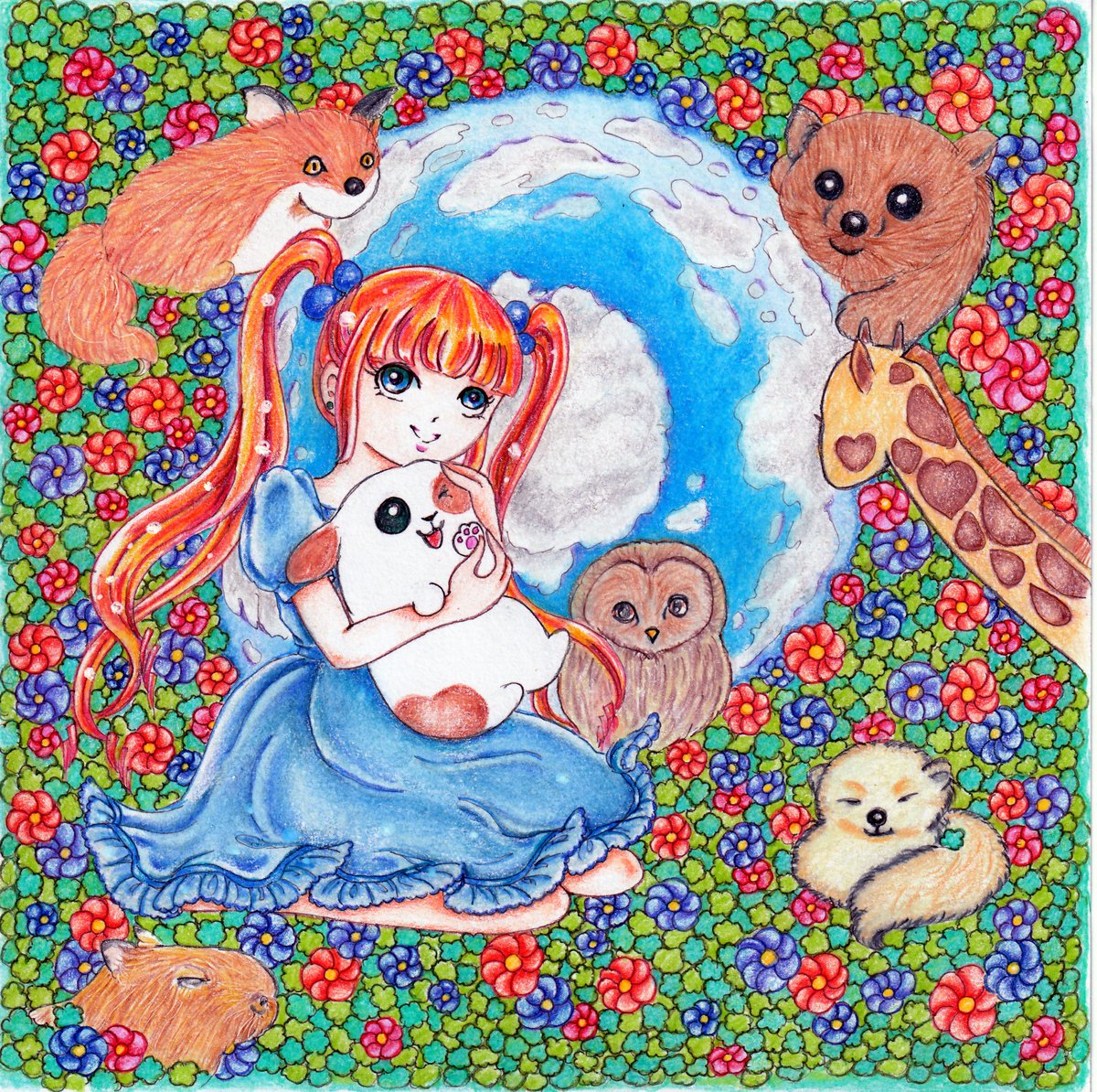 №827「花・乙女」 何時もと違う紙に描いたので どんな感じになるか ちっと気になってたんですが 思ってより発色もよくでたので 一安心です さて、これから「乙女」を 沢山描いていくのです!#絵描きさんとつながりたい #落書向上委員会 #絵描き人 #イラスト王国 #春の創作クラスタフォロー祭り