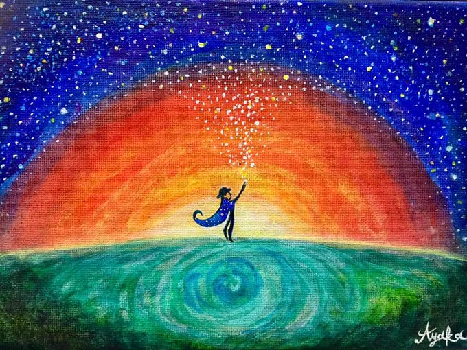 小夜さんからバトン頂きました。ありがとうございます☺️お気に入り🖼 @aki_spraypaint @Ariaartstudio1 @kufuku6 @news_mumi @esakurai_000 次はいつも楽しみにアート拝見させて頂いている皆様へ...🎗(2度めの方はどうぞスルーで!) #引用RTで絵をあげて5人指名してバトンでお気に入りの絵を載せる twitter.com/dm_dux/status/…