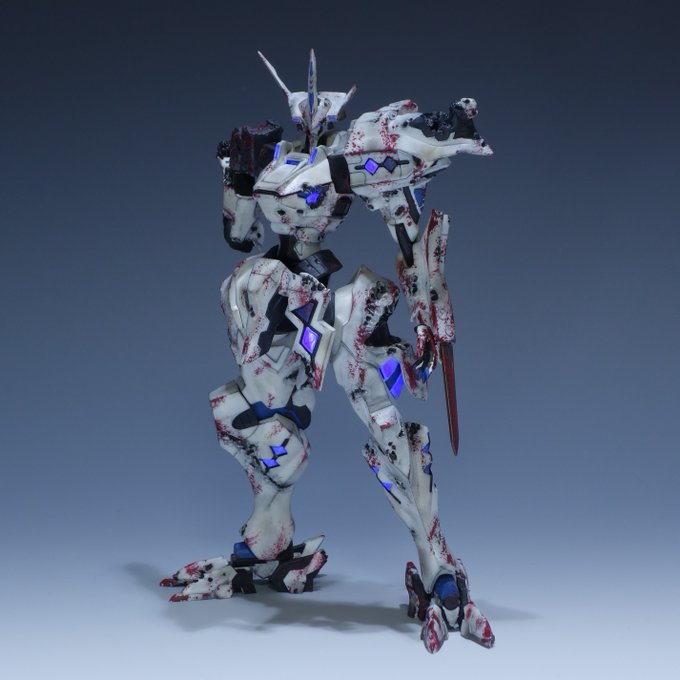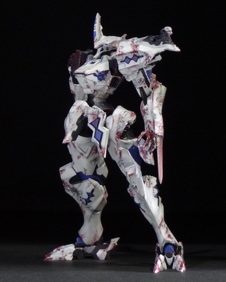 1/144 武御雷 Type-00A 桜花作戦仕様 バトルダメージver. (彩峰慧搭乗機) #マブラヴオルタネイティヴ 以前ツイートしたものを若干リペイントしました。 模型的アレンジとして、発光部を一部消灯させ、より満身創痍な状態を感じられるようにしています。 ——おまえらなんかにやられないッ!!