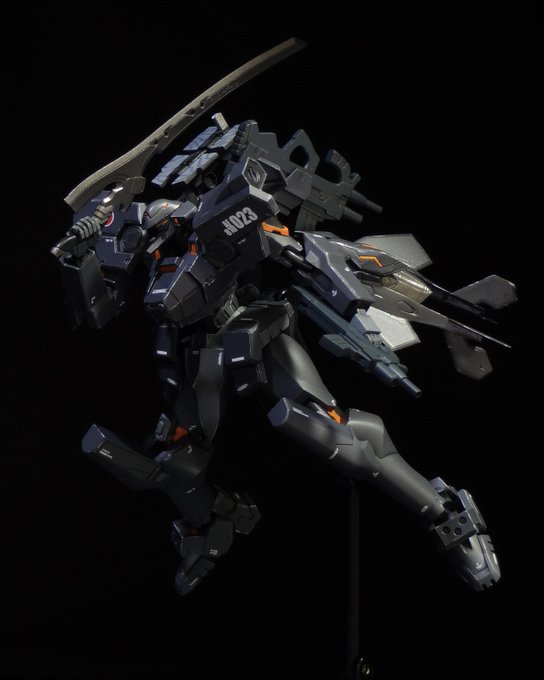 コトブキヤ 1/144 不知火・壱型丙 試製99型電磁投射砲装備 マスキングを断念し、筆塗りフリーハンド迷彩にて吶喊しました、、。 「接続確認、異常なし! ホワイトファング3……準備は良いな?」 #篁唯依誕生祭2022