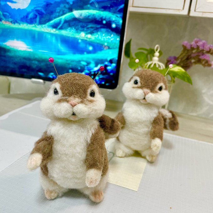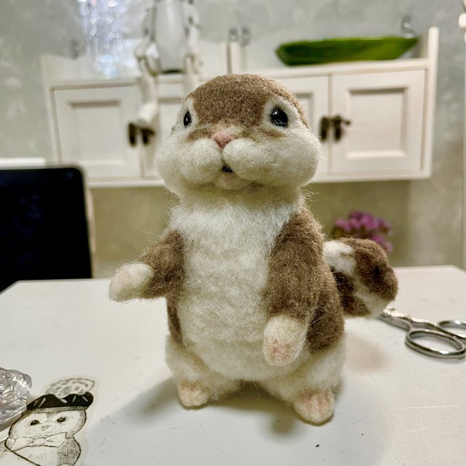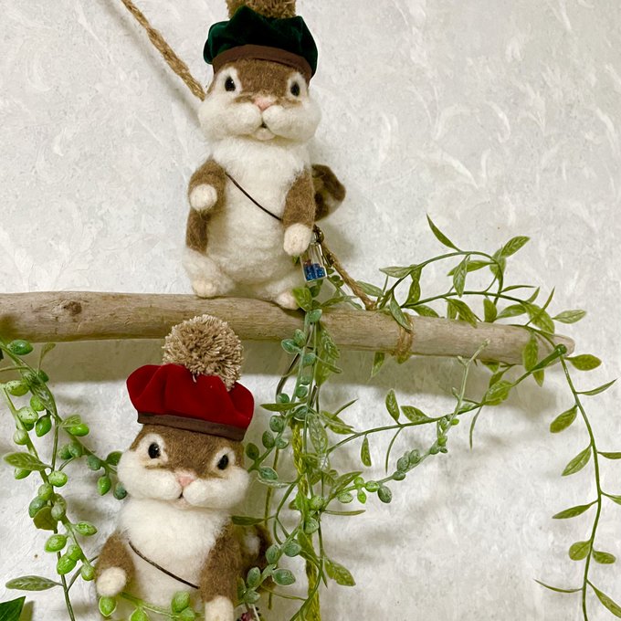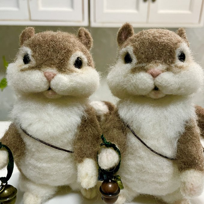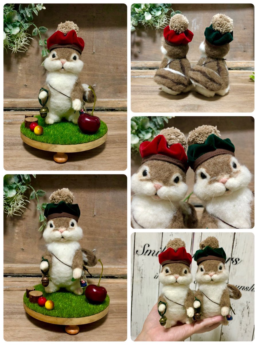不思議な森のリンリスちゃんが完成しました🔔🐿 9月19日(月)21:00頃からminneにて出品しておりますので宜しかった遊びに来てください(◍´ω`◍) 【minne gallery】 🍀minne.com/@kaori5611 #羊毛フェルト #シマリス