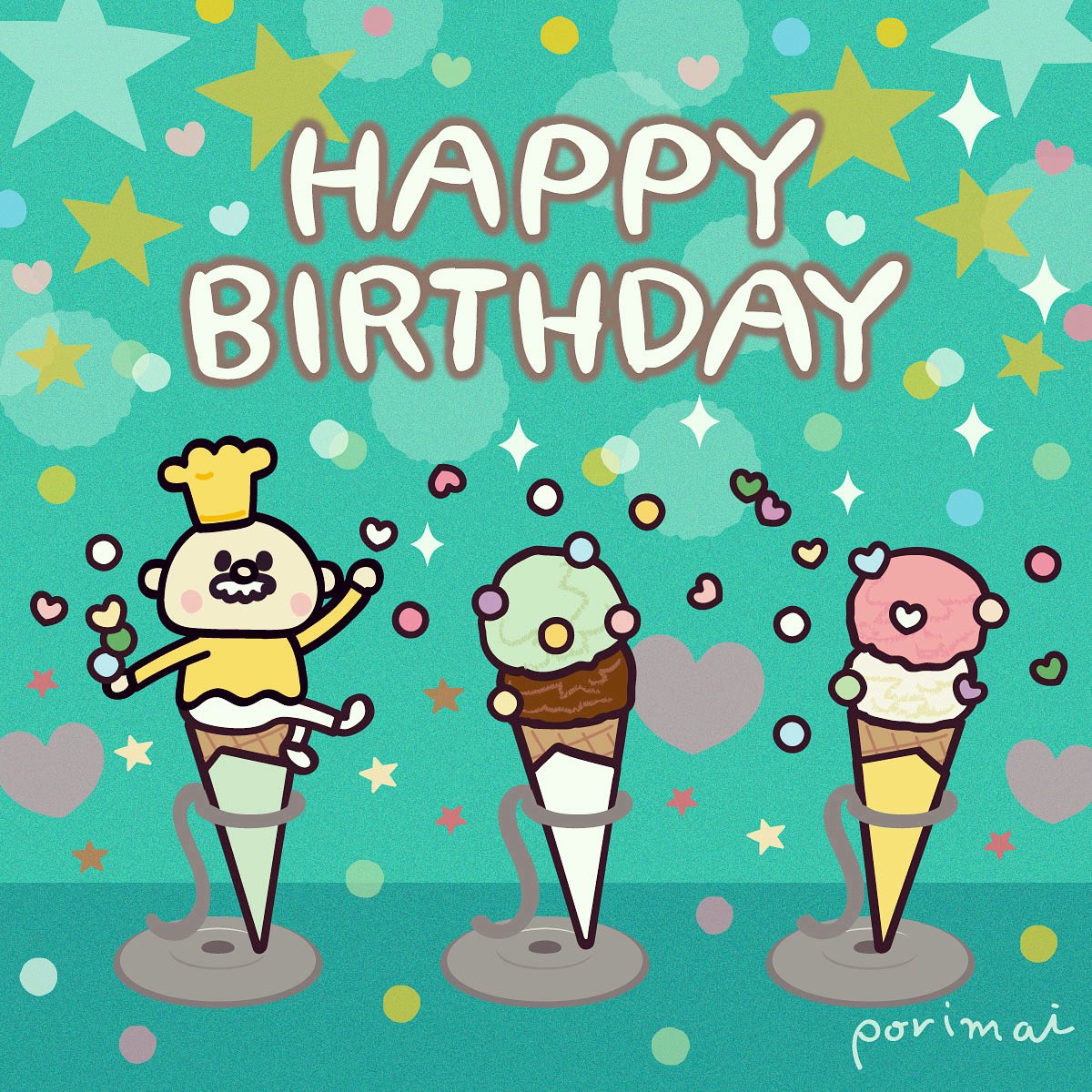 【happybirthday!!】 今月お誕生日のみなさん、おめでとうございます!モリモリで最高の一年でありますように‼︎✨ 2022.6 #バースデーカード #お誕生日おめでとう #イラスト