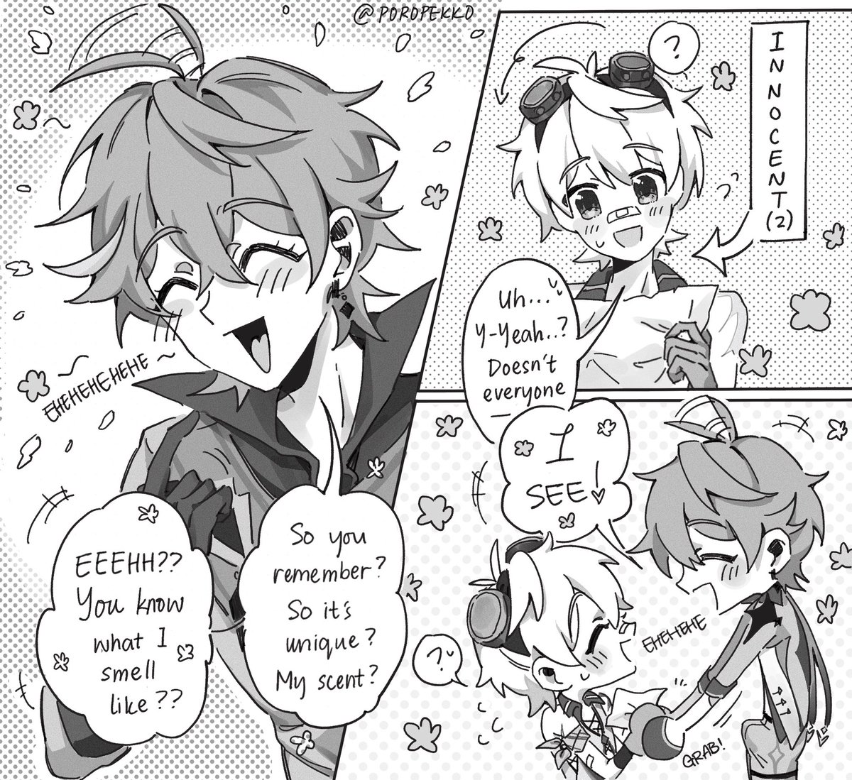 Embarrassingly late for #chennettweek21 DONT even perceive me. Chennett morning routine, every damn morning. Or, why the eleventh fatui harbinger is always late to work nowadays _(:3」z)_, enjoy! (1/5)