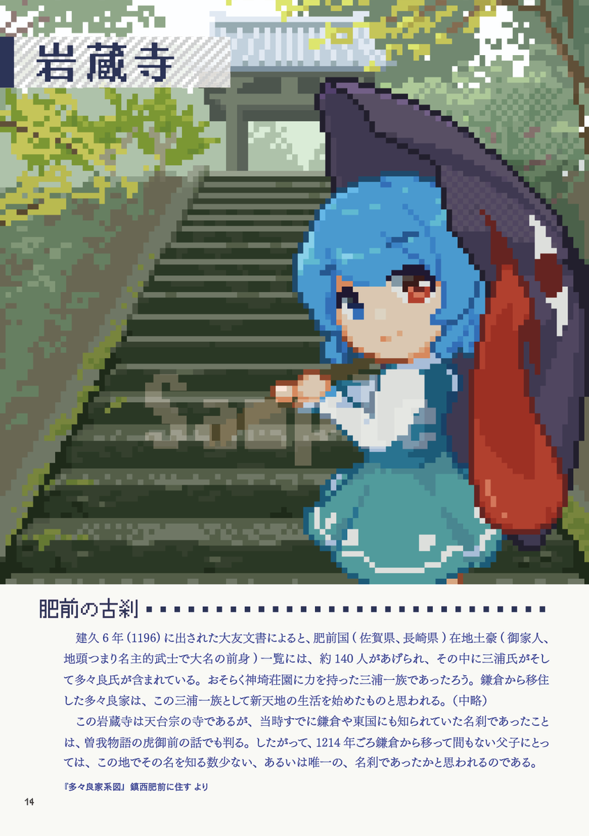 【告知だよ】5月7日例大祭20の新刊です。 「君は肥前多々良氏を知っているか」 偶然出会った『多々良家系図』という本に感銘を受けて現地に行った紀行物っぽい本です。去年出した小まとめ2つを1冊に再構成しました。 肥前多々良氏の足跡を往く/24P/500円 【し33b】でお待ちしております。
