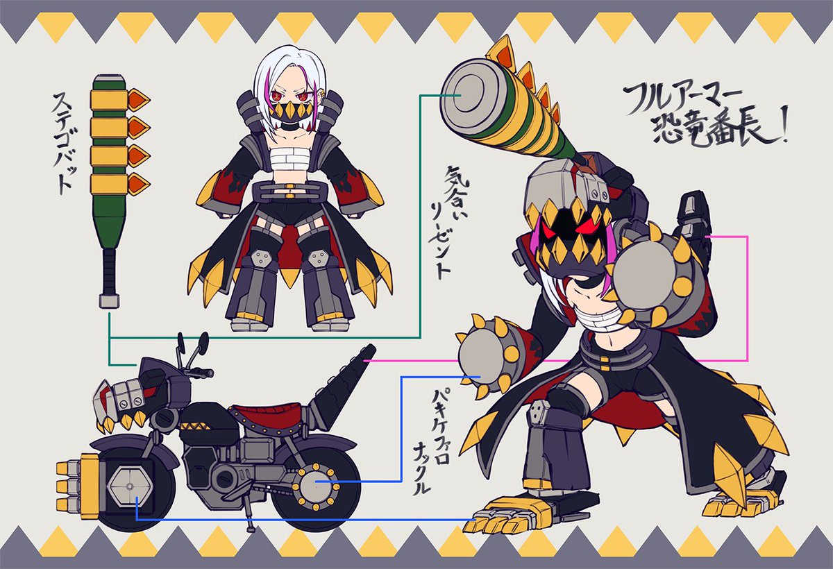 【コンテスト参加】【応募条件に同意します】#デスクトップアーミー 名称:恐竜番長 ある小さな町の治安を守るティラノサウルス型D-phone。 地元の悪から恐竜番長の名で恐れられている。 本気の喧嘩はフルアーマーモードで戦う。 普段は虫も殺せない程の草食っぷりで誰も正体に気付かない。