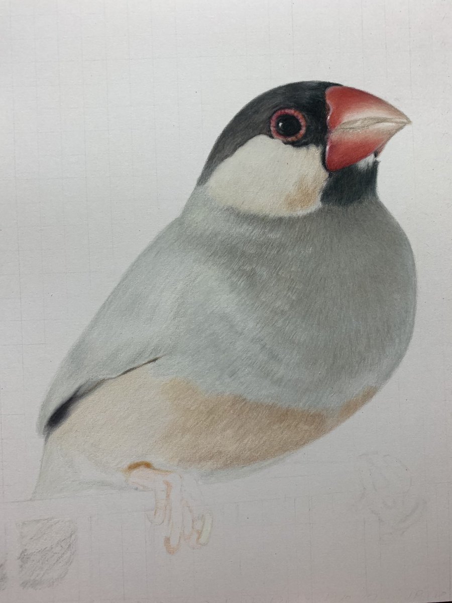 文鳥出来ました❣️ #文鳥 #色鉛筆 #minneでご依頼受付中 #DMでもいいよ