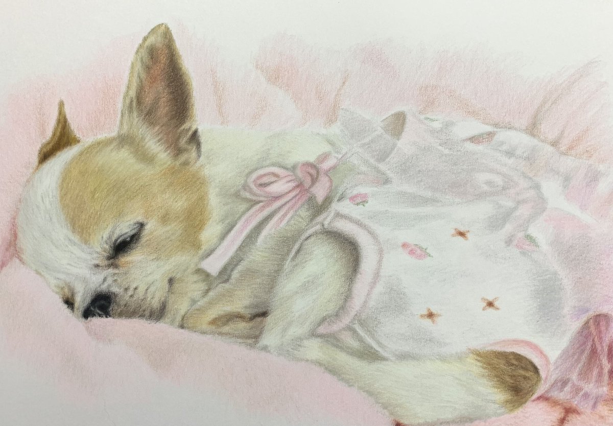おねむのチワワちゃん💕 #いぬいらすと #色鉛筆 #色鉛筆イラスト