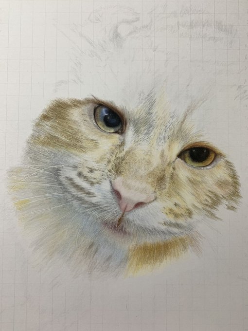 ねこさん出来た❣️😆 よし!昭仁さん描く‼️ #色鉛筆画 #色鉛筆ねこ #色鉛筆