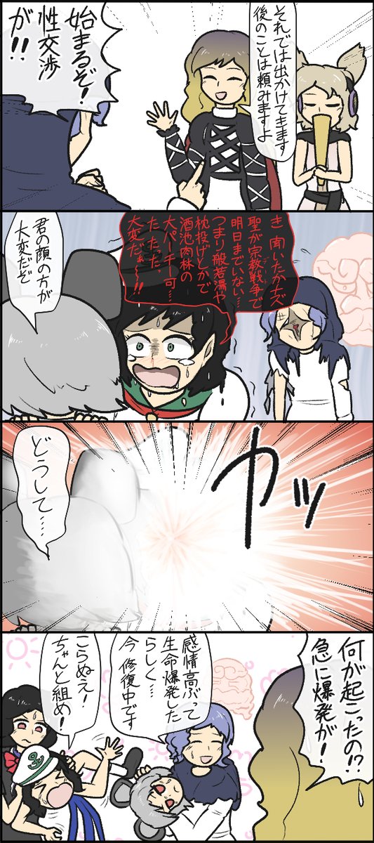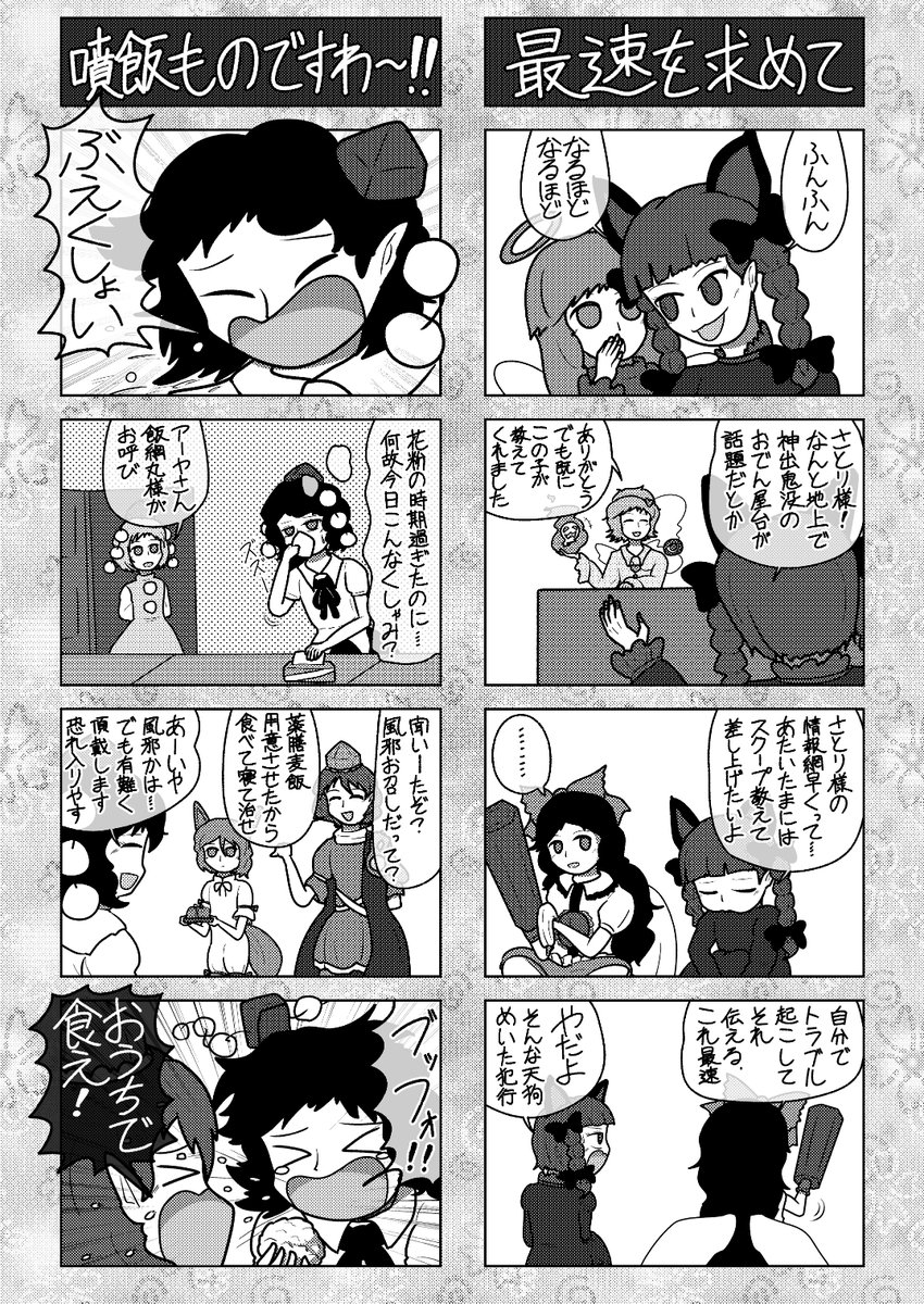 36 64 第20回例大祭 く-22b「炊くの5合」で出す新刊です 40ページ500円 全部描きおろし (4コマ33p/66本・変なページ5p) 芳香の4コマ多め その他霊廟の人たちを始め色んな東方キャラが登場します。よろしくね 23/04/29 19:11