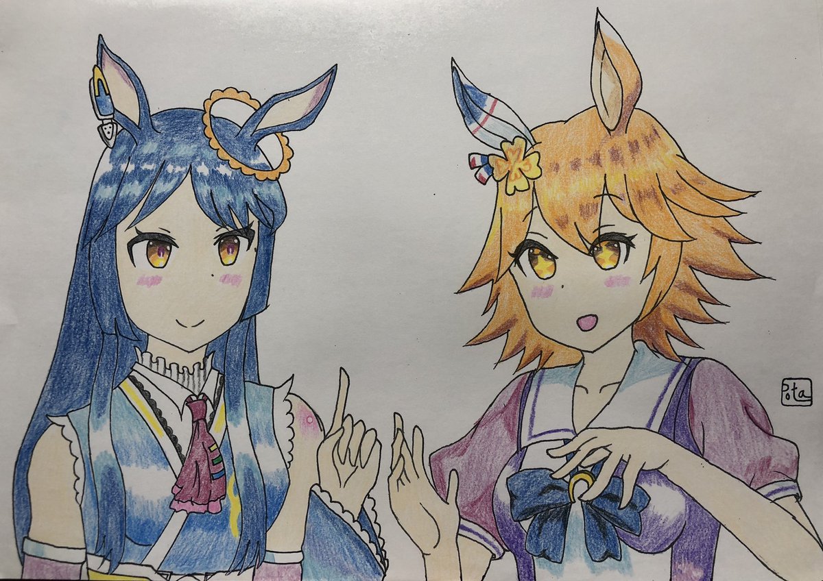 今週のウェザロアートのテーマは「馬」 ポン子&マチカネフクキタル どちらも奇想天外な占いをするとこがめちゃすこ #ウェザロアート #ウマ娘