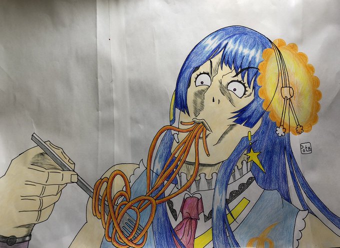 今週のウェザロアートのテーマ「パスタ」 ポン子はパスタをウンまああ〜いって食べそうよね #ウェザロアート