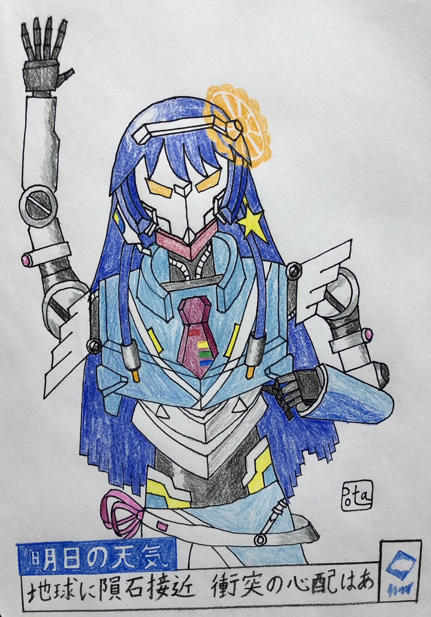 ポン子4周年おめでとう! 「みなしゃーん!ぽんばんは!ウェザーロイドtypeA(Armored)アイリでーす!」 「この度ポン子は4周年を迎え新衣装、新ボディを手に入れました〜! 明日は地球に隕石が接近しますが、ポン子が隕石を破壊するのでご安心くださーい」 #ウェザロアート