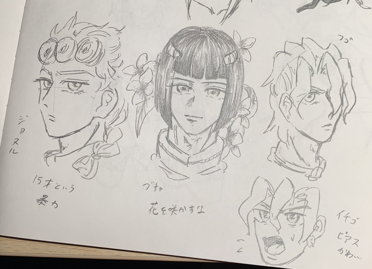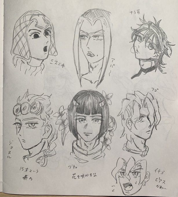 jjba 落書き ナランチャーーーッ!と下段は良く描けたんでなかろうか… ジョルノはゴミを見るような目が似合うしブチャラティは勝手に背景に花が描かれる #イラスト