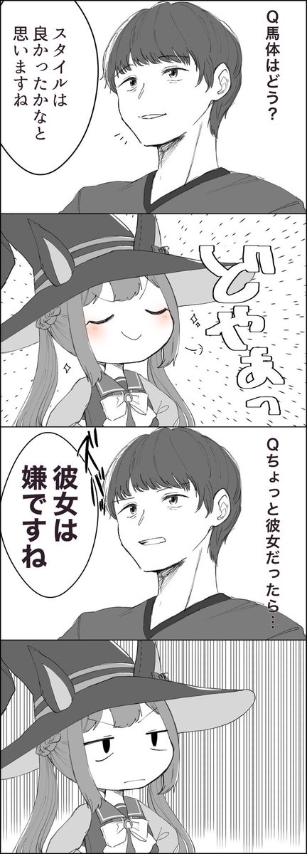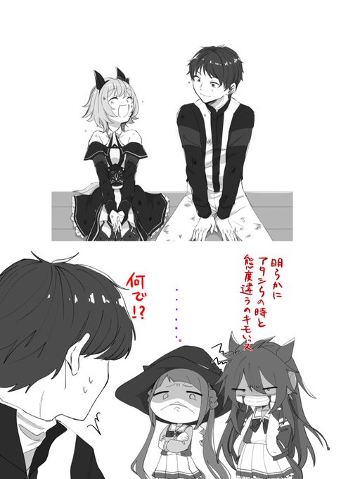リクエストでいただいた「豊トレーナーに手首を掴まれて、体重を察しられ、めちゃくちゃ焦るスペちゃん(とマックイーン)」 豊さんとクリストフからのメッセージとってもびっくりでうれしかったので再掲(クリストフ全然描いてなかったゴメンネ……………)