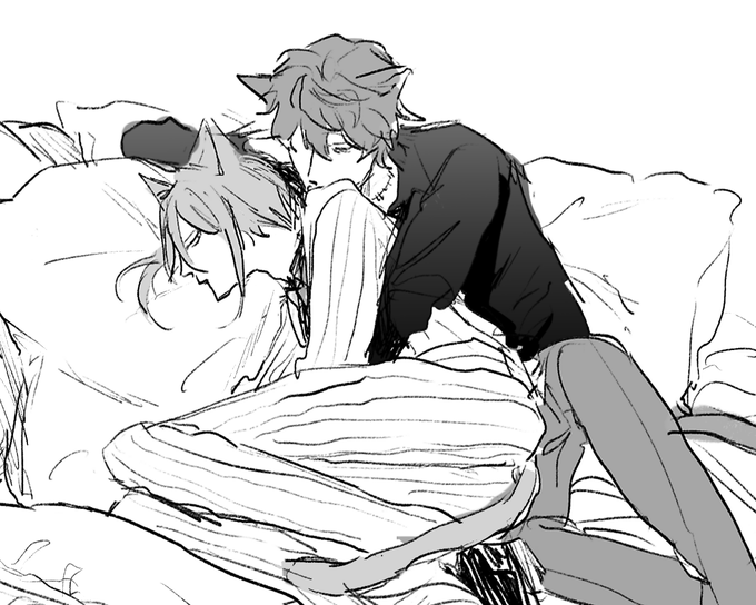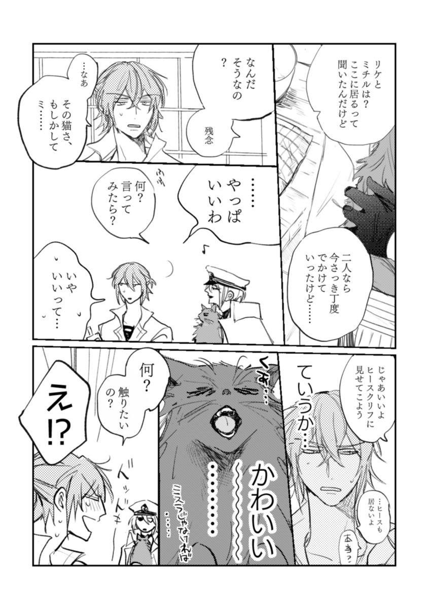 【8/28開催 Mystic Engage2】 ミスオエ新刊「昼下がり、けだま」(A5/コピー本/20P/200円/全年齢) サンプル (1/2) ※ミ猫化 ※会場頒布分は表紙もモノクロです pixiv→pixiv.net/artworks/10079…