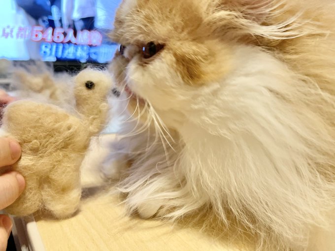 1 44 変な人形こんにちは♪ …ガブっっ お姉ちゃんが抜け毛で作った人形は、はかなく散っていきました。。 #cats #猫好きさんと繋がりたい #猫との暮らし #羊毛フェルト #エキゾチックショートヘア 21/04/09 17:24