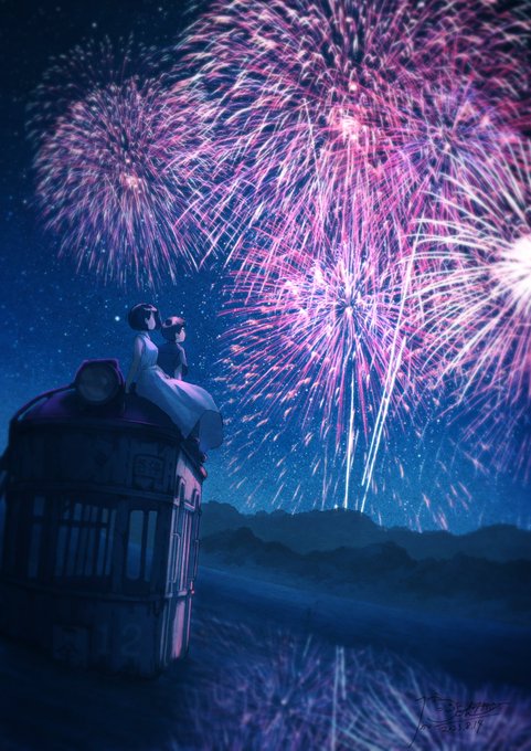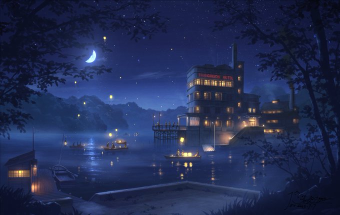 #2024年自分が選ぶ今年の4枚 まずはなんと言っても台湾個展のメインイラスト! 街の谷間から溢れる光に包まれた住人たちの暮らしを細やかなディティールで描いた、「廃坑の街」の原点回帰的な作品です。 あとは住人とともに色々な人生を歩む路面電車たちの点景🚃