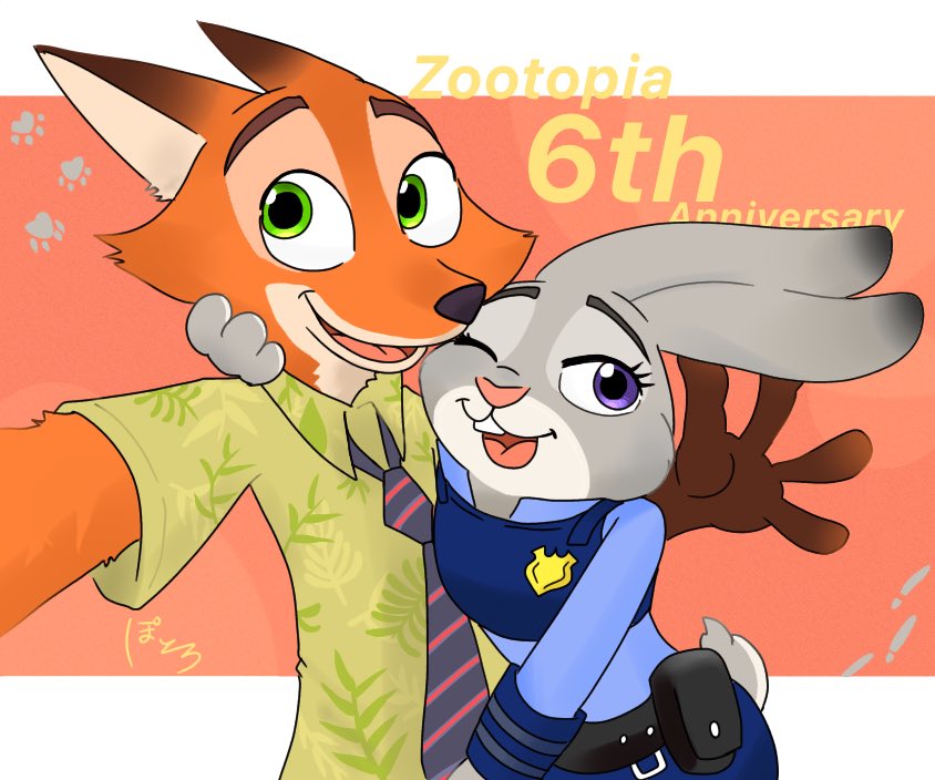 6周年おめでとう!!(過去絵再利用) 生まれてきてくれてありがとう😭 🦊🐰 #ズートピアスクリーンデビュー #zootopia