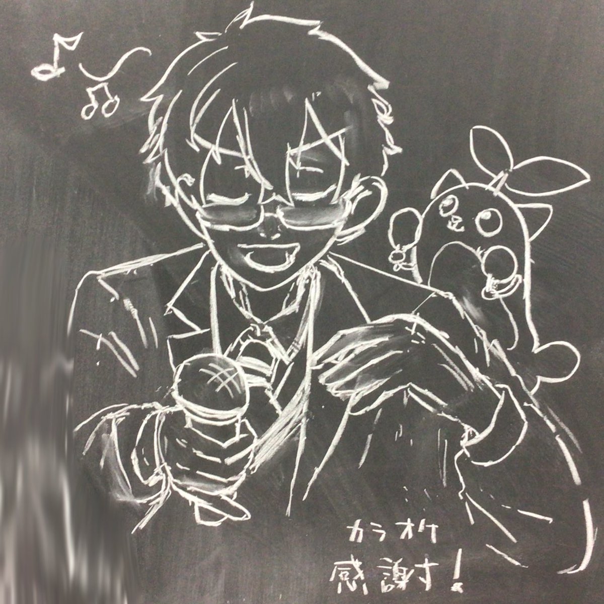 昨日のカラオケありがとう...😭 な黒板絵! #まめねことレオス #レオスの実験室
