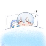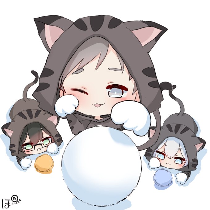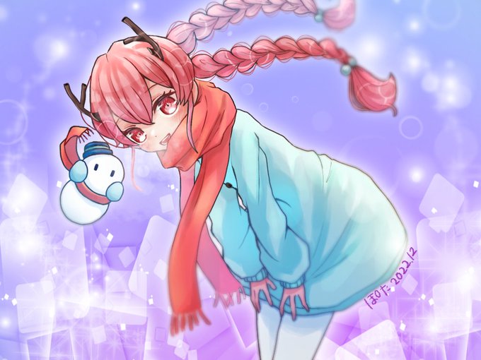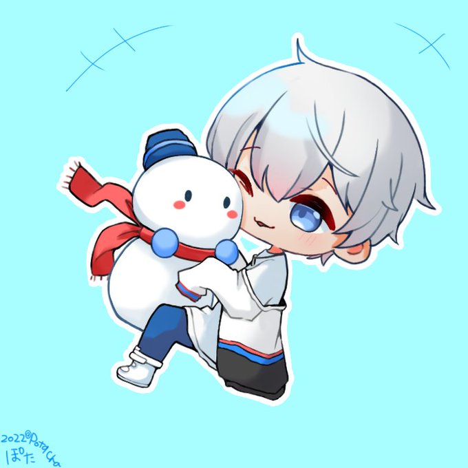 #雪だるまくんアート #見るかもわからん 作った雪うさぎにマフラー巻いてる雪だるまくんと「そろそろ帰ろっか」ってしてるおらふくん。既にめっちゃ寒いので皆様ご自愛ください(◡ ω ◡)