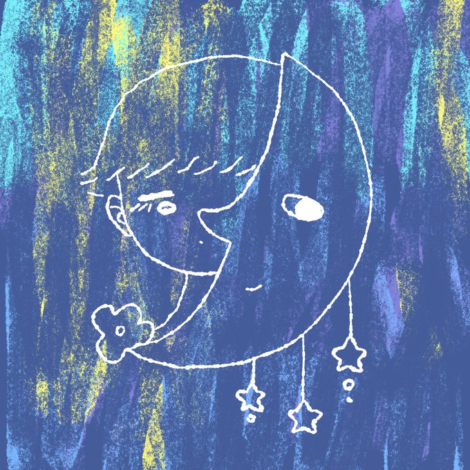 🌛 #イラスト #ゆるい絵 #落書き #月 #女の子