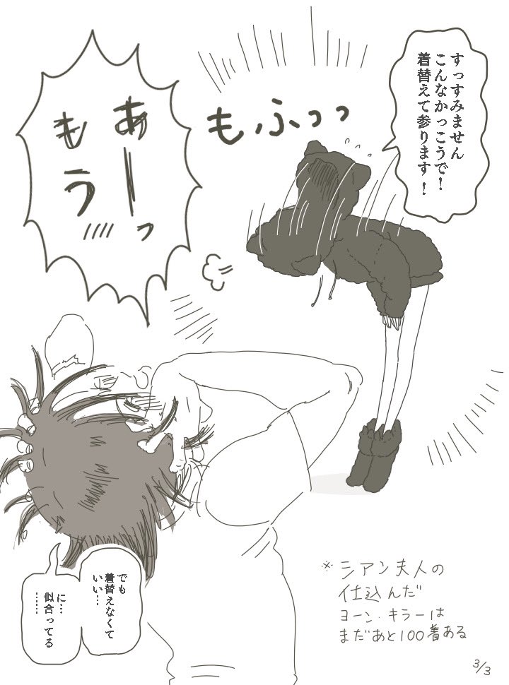 今年初の投票はパルスエットに一票お願い致します!3枚あります。色々許してくださる方のみご覧ください。ヨーン君の「に…似合ってる…」がまた聞きたくて。 #ファティマ総選挙2021 #FSS_fanart