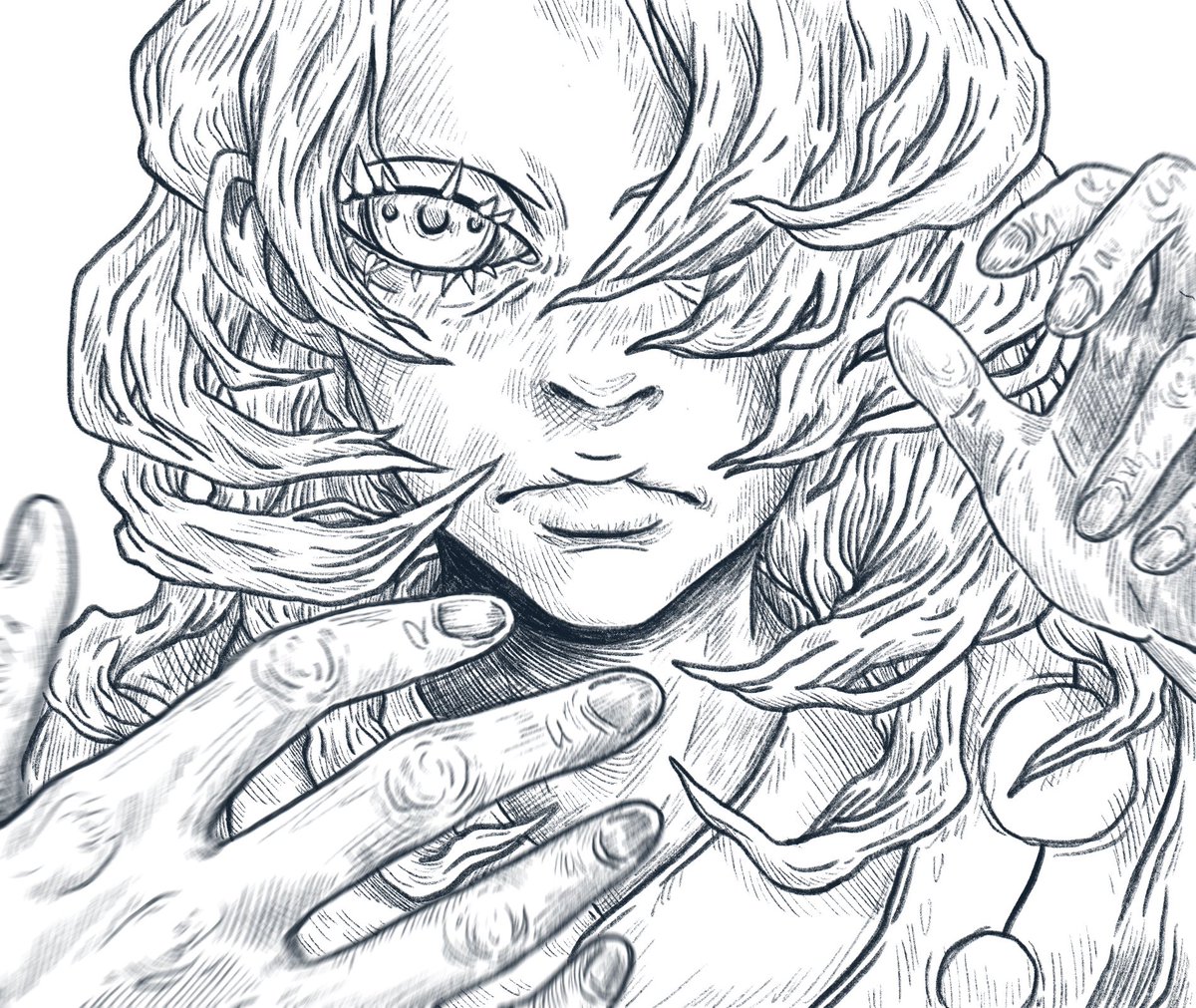 перерисовала арт, который сделала в сториз инсты. была няша, стала говняша. #lineart #ArtistOnTwitter #AnimeArt #animegirl #originalcharacter #guroart #goreart