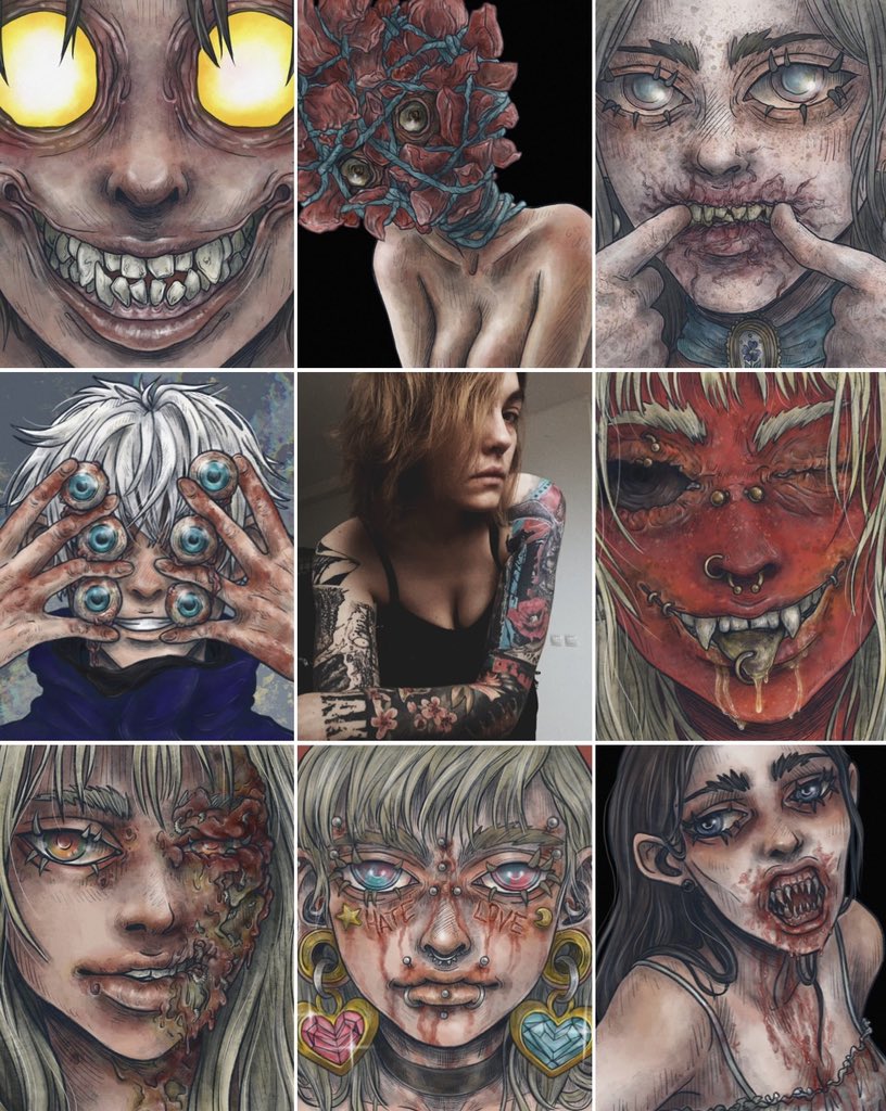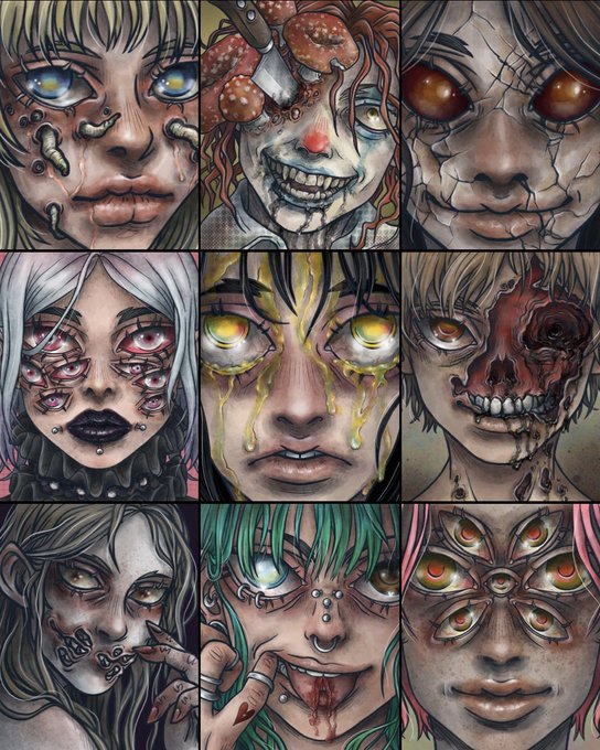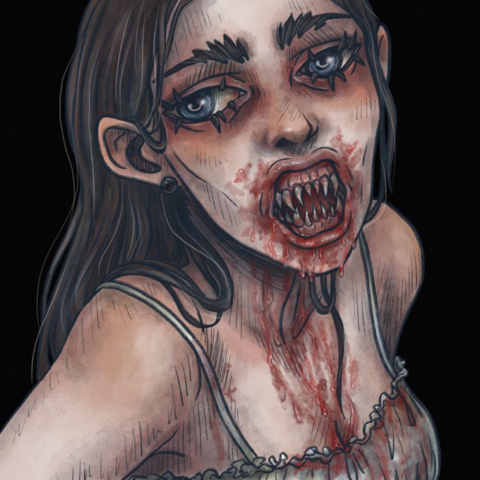 будет перерыв в рисунках почти на две недели кстати. не скучайте там без моих страшненьких еблишек💕 #faceyourart #FaceYourArt2022 #ArtistOnTwitter #originalcharacter #guroart #goreart #Procreate #AnimeArt #HorrorArt