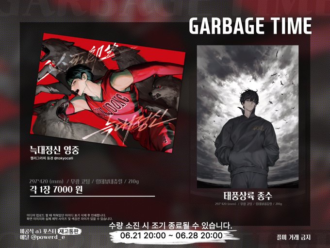 가비지타임 비공식 A3 포스터 재고 통판 📢06.21 20:00 ~ 06.28 20:00 - 수량 소진 시 조기종료 - 공지 숙지 꼭 부탁드립니다! - 관련 문의는 트위터 DM 및 메일 폼 내의 입금정보 입금자 명, 계좌 입금자 명은 꼭 ❗️❗️성함 + 휴대폰 뒷자리 4자리❗️❗️ 🔗witchform.com/deposit_form.p…